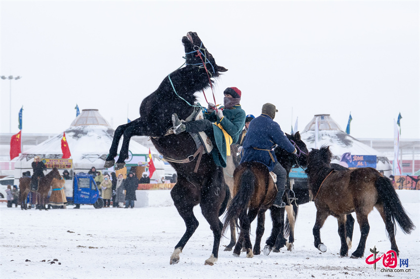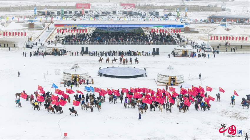 零下30度的“辽阔草原·锡林郭勒”洋溢着一派歌舞欢腾、热雪澎湃的冬日激情,寂静的雪原被马蹄声踏醒,凛冽的空气被热血点燃……2月1日,锡林郭勒盟第三届冬季蒙古马超级联赛总决赛在内蒙古锡林浩特市那达慕风情园盛大开幕。319名骑手与他们的骏马在冰天雪地中诠释“吃苦耐劳、一往无前”的蒙古马精神,与八方游客共迎新春。