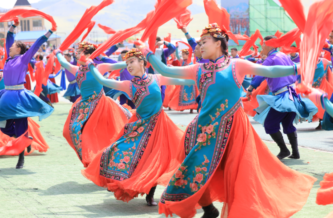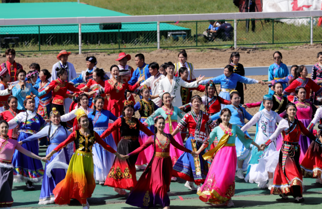 56个民族华裳铺就“民族团结通道”,24名骑警擎国旗踏歌而来,“北疆”“京蒙”彩车以流动的画卷诉说时代交响,劳模方阵高歌《我们走在大路上》传递奋斗荣光,各旗县代表队舞动地域风情, 《山水盟约》铺展壮美画卷,《你和我》唱响青春律动,《礼赞》《绿色兴安》《神奇草原》歌声舞步汇成欢乐海洋,万人安代舞《为内蒙古喝彩》红绸翻飞点燃会场。