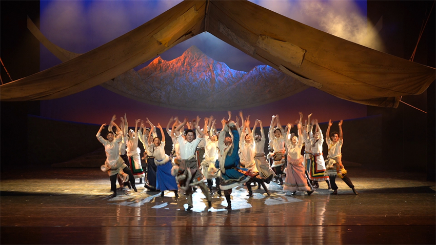 舞剧紧扣果洛各族群众守望相助、同心筑梦、携手共促发展的动人历程,以艺术化手法生动再现了当地群众从逐水草而居的游牧生活,到扎根家园、安居乐业的历史性跨越,定格了高原大地日新月异的发展图景。剧目深度融合藏族传统舞蹈语汇与现代舞蹈表达,搭配极具高原特色的音乐旋律和震撼的现代舞台视觉效果,通过细腻的人物刻画、真挚的情感传递与磅礴的场景铺陈,生动描摹出援青干部与当地民众心往一处想、劲往一处使,同心同德共建美好家园的奋斗画卷,深刻传递出民族团结一家亲、同心共筑中国梦的时代内涵。