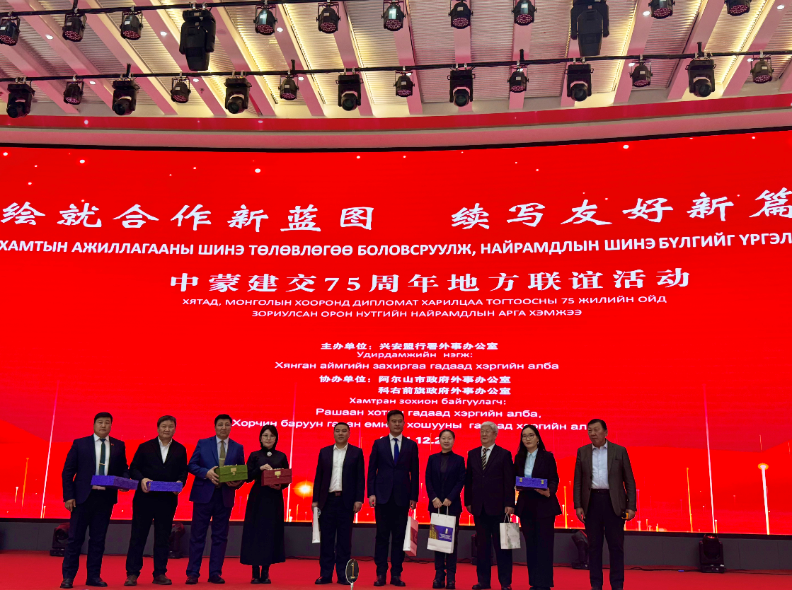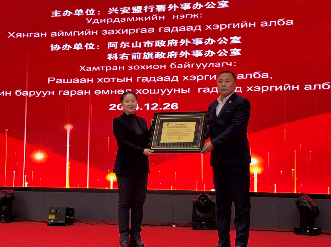 同时举行庆祝兴安盟与东方省成功缔结盟本级首个国际友城,阿尔山市与乌兰巴托市松根海尔汗区建立国际友好城市关系10周年,兴安盟与中央省、科右前旗与东方省哈拉哈高勒县友城意向结好1周年活动,以友城建设赋能,深挖合作潜力、增添合作动力。期间,蒙古国边境口岸管理局局长巴特贺喜格向我盟主要领导致感谢信,诚挚感谢兴安盟对松贝尔口岸基础设施的援建及修缮。