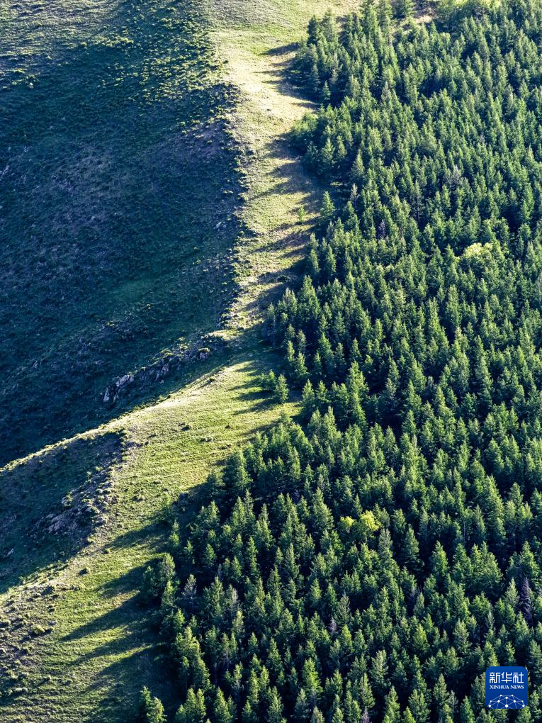 这是6月5日在内蒙古大青山国家级自然保护区拍摄的草原风光(无人机照片)