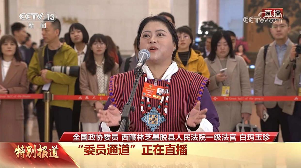 今天,在全国政协十四届三次会议的第三场“委员通道”上,全国政协委员、西藏林芝墨脱县人民法院一级法官白玛玉珍为家乡打call:“墨脱实现了高原孤岛向美丽边城的时代蜕变。”