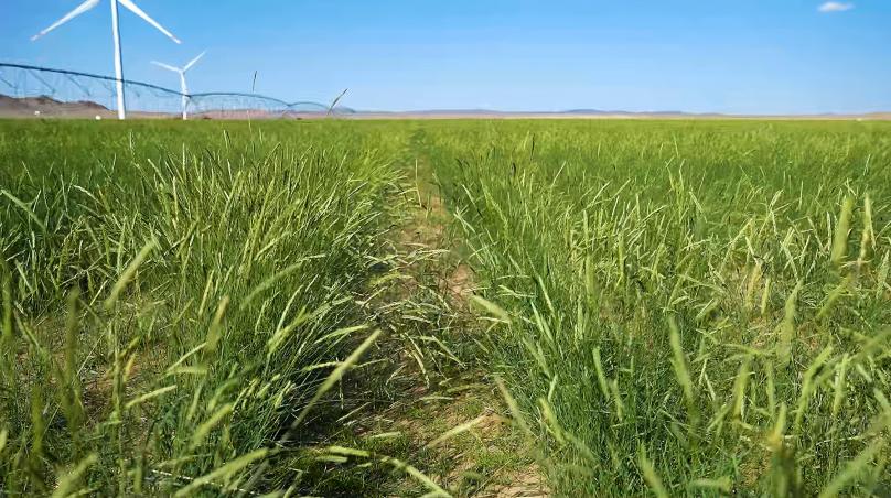 蒙草生态联合蒙能、大唐等新能源企业,将可持续防沙治沙与新能源开发有机融合、一体推进,在沙漠腹地建立防沙治沙生态治理项目示范区,筛选适配光伏板间生长的牧草、生态草品种,集成水资源高效利用技术,探索“板上发电、板下修复、板间种植”的立体生态光伏治沙模式,既实现沙漠添绿,又通过牧草种植、生态养殖带动沙漠经济发展。