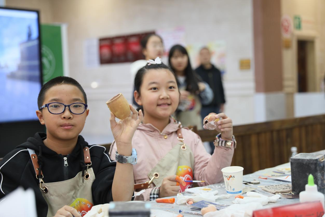 同学们尝试动手修复模拟文物(摄影 :韩立岩)
