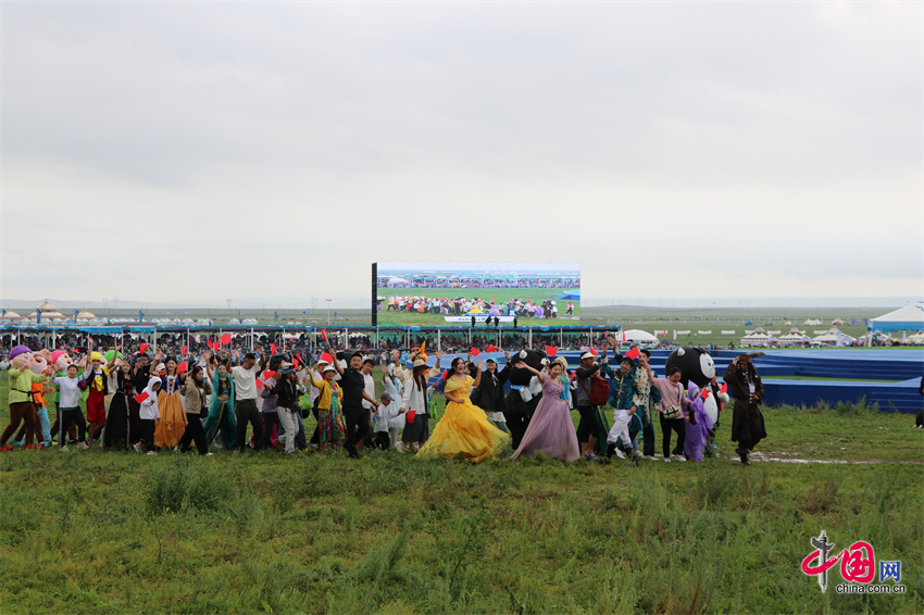 本届那达慕的亮点之一是以游客为主角,花式“宠客”。在开幕式上,不仅邀请游客代表组成方阵,与吉祥物“达慕慕”共同入场。宣布开幕环节也打破常规,邀请手环编号“1314”的幸运游客与特邀嘉宾阿云嘎一起带领全场倒数,宣告大会正式开幕。