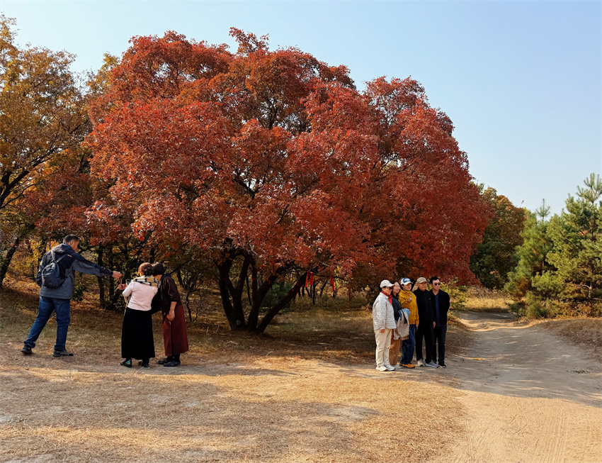 文创互动区也格外热闹,集印章、有奖问答、自制枫叶书签等活动,为游客留下专属纪念。这些设计既保留了原生态枫林的静谧之美,又融入了现代旅游的趣味性,让不同年龄、不同需求的游客都能找到属于自己的“枫”味体验。来自北京的游客白维雅赞叹:“来到乌旦塔拉五角枫森林公园直接被震撼到了!这漫山遍野的枫红特别有层次感,太壮观了,来这一趟太值了!”