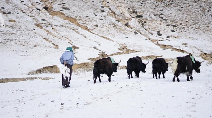 征集作品:《雪域冬牧:牦牛相伴的征程》作者:嘎玛曲宗