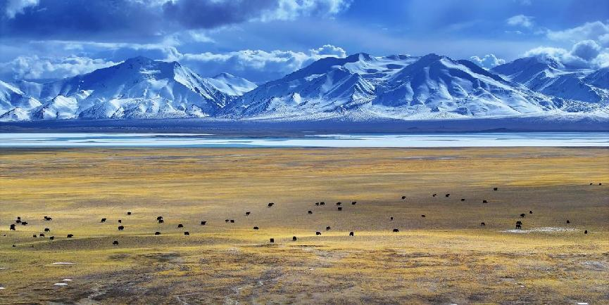 作品简介:(作者自述)拍摄于2023年6月国道216羌塘段。牦牛在草原上悠然漫步,远处雪山连绵、峰峦巍峨,与草原相映成趣。