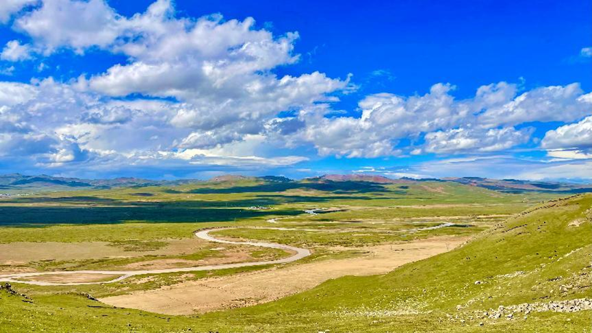 作品简介:照片拍摄于西藏那曲市安多县,图中云海连绵、草原翠绿,远处溪流九曲回肠。