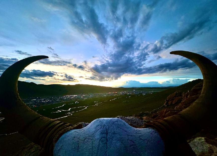 作品简介:照片拍摄于那曲市班戈县,以昂扬挺立的牛角为前景框架,远处河流蜿蜒,村庄错落分布。班戈,藏语意为“胸腔”(一说是“吉祥保护神”),因境内的“班戈错(湖)”而得名。
