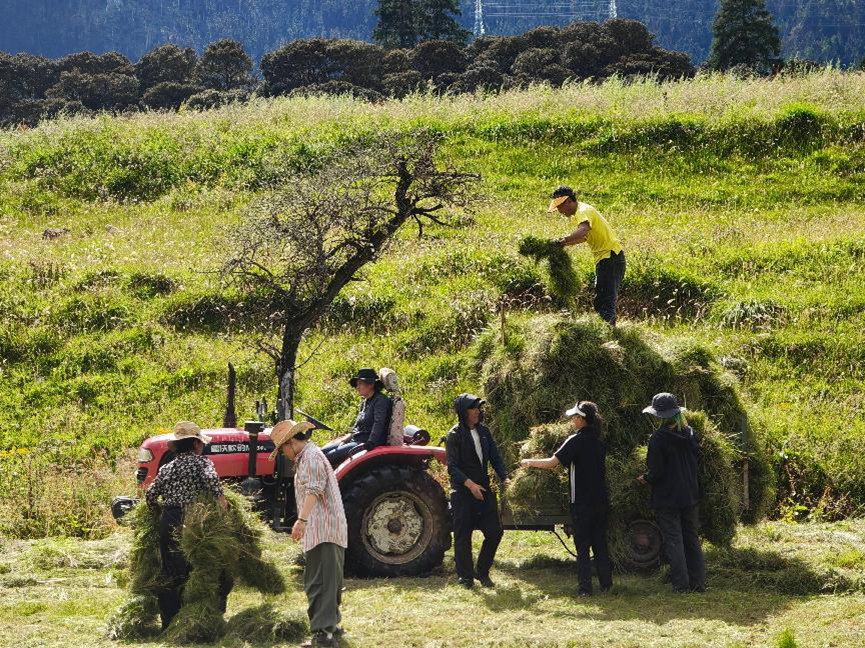 作品简介:(作者自述)照片拍摄于西藏林芝市巴宜区鲁朗镇扎西岗村。图中,普巴一家利落有序地为家中牲畜收储牧草。