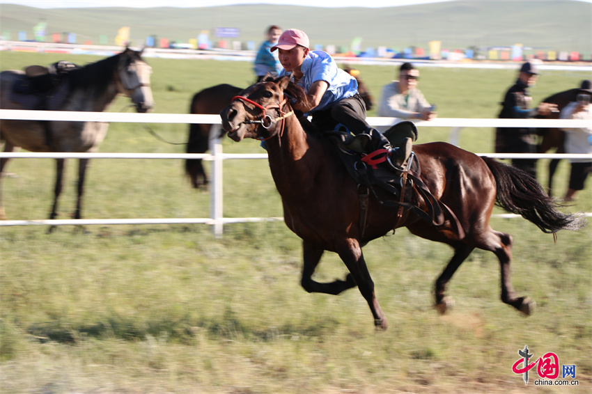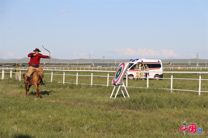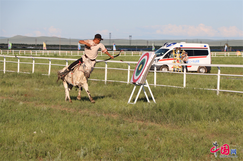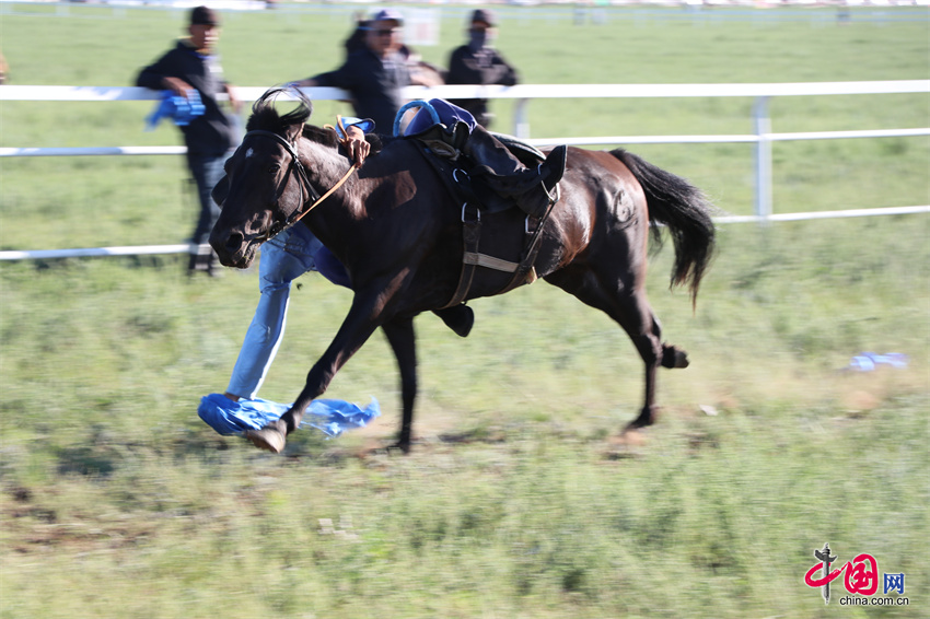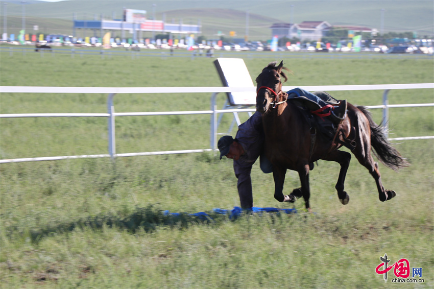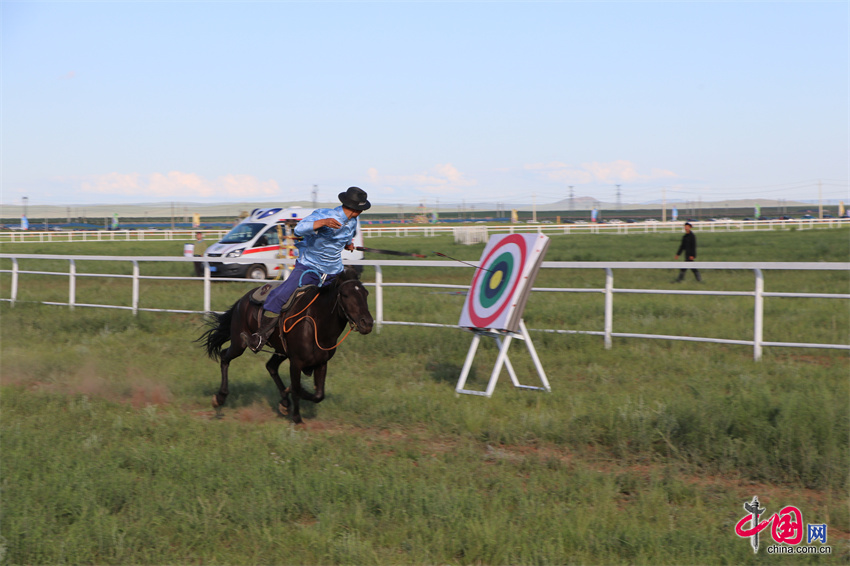 7月20日,内蒙古自治区第35届草原那达慕的赛马比赛在内蒙古锡林郭勒盟锡林浩特市举行,跑马拾哈达、跑马射箭等比赛项目陆续展开。