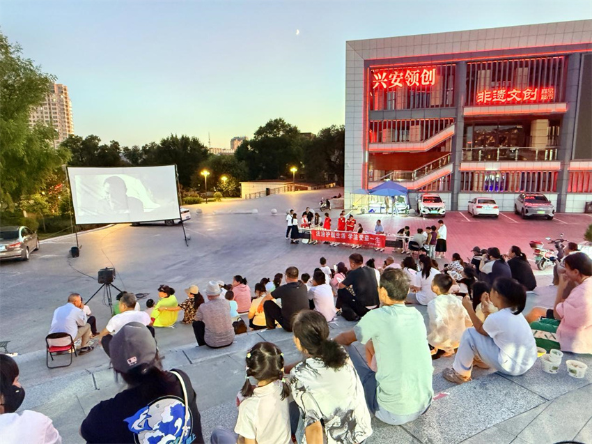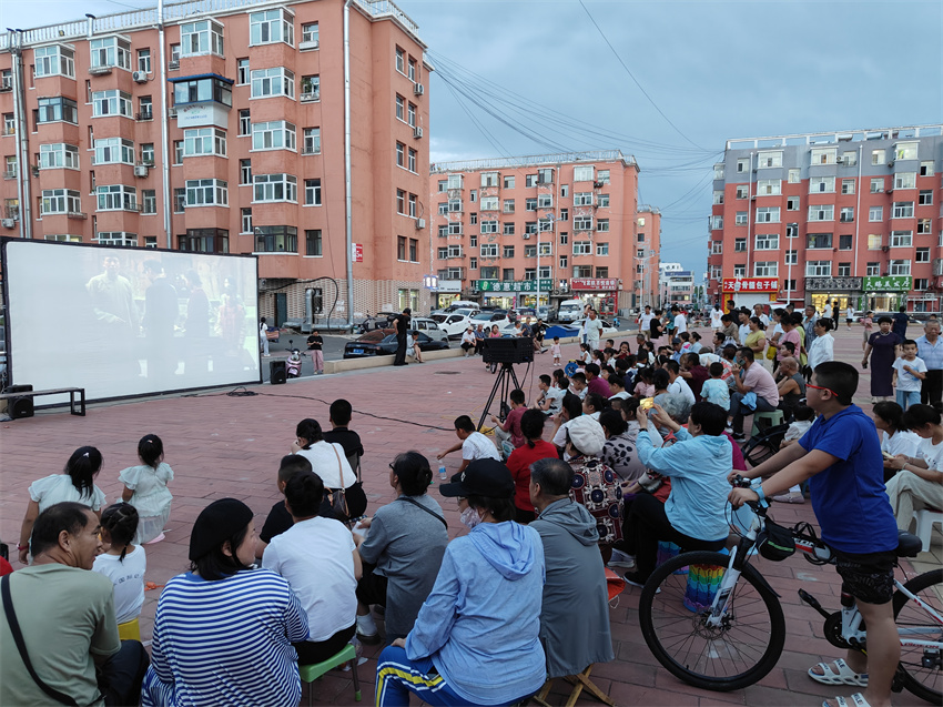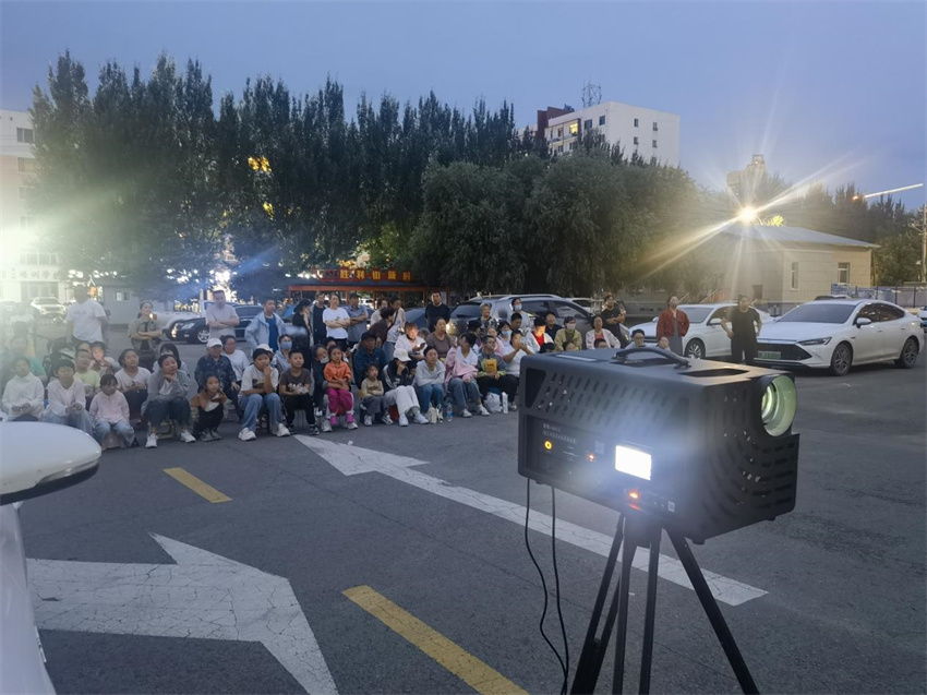 2025年的夏天,乌兰浩特市的群众在夜晚遛弯、跳广场舞之余,又多了一项新选择:看露天电影。8月的夜晚,星星还没布满天空,露天电影场地已经在天骄街道红星社区城市之星小区的院子里布设好,居民们或搬着小板凳儿、或带着小棉垫儿,围坐在一起津津有味地看电影。“今天播放的电影是哪吒2之魔童降世,真是太好看啦。平时没时间去电影院,现在在家门口就看上,不仅重温了童年的美好回忆,还增进了邻里之间的感情,现在感觉小区的氛围越来越温暖了。”居民王丽丽看过电影后幸福感满满。