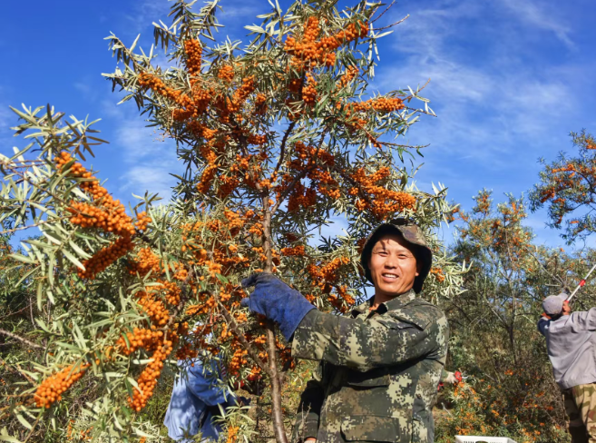 科左中旗林草局局长白子桢介绍:“沙棘不仅是经济效益显著的经济作物,还具备良好的生态效益,能够防风固沙、改善土壤环境。今年我们加强了田间管理,全旗的沙棘产量明显提高。下一步,我们将继续扩大种植规模,推动沙棘产业走向标准化、品牌化,让沙棘真正成为农户的‘致富果’。”(文:杨煜哲,原标题:科左中旗:橙红沙棘果 映红致富路)