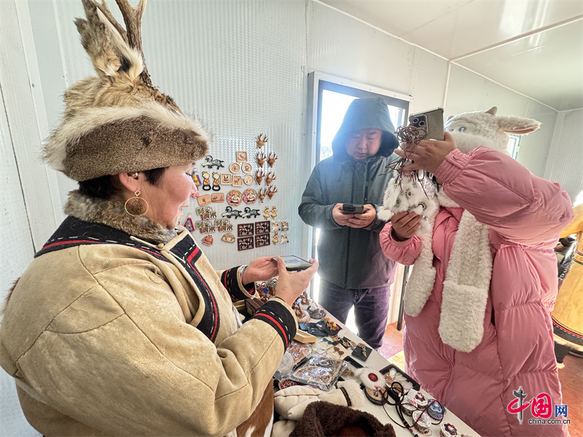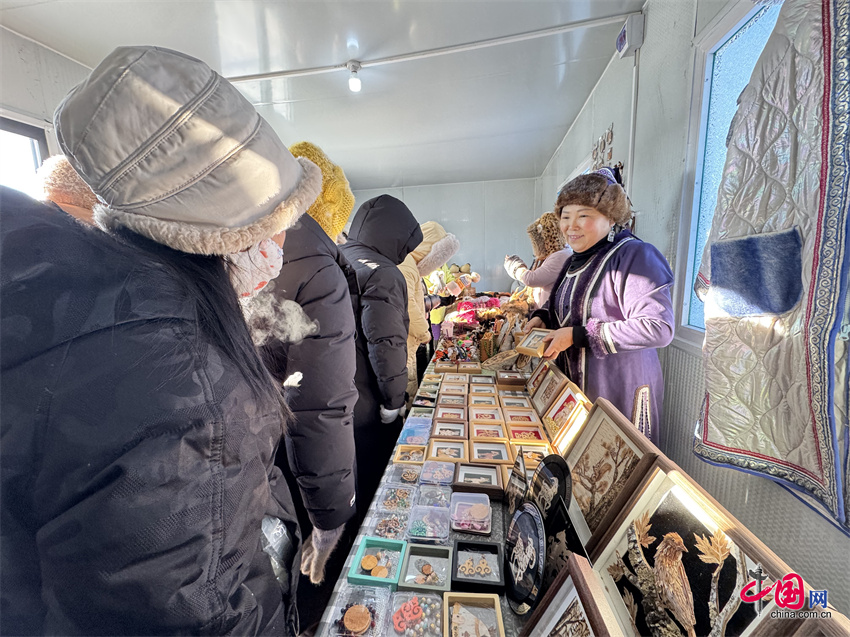 本届冰雪“伊萨仁”精心打造的多元活动矩阵,让热闹氛围贯穿全程,更让消费活力持续迸发:周边售卖热饮、特色小吃的摊位前排起长队,烟火气十足。红柳大串滋滋冒油、柳蒿芽汤香气醇厚,鄂伦春传统美食与东北地方风味齐聚,游客们大快朵颐,在舌尖品味地域文化的同时,直接拉动餐饮消费;“岭上好物”文创展示区内,桦树皮、兽皮等非遗制作技艺现场展演,游客们近距离观摩技艺、挑选手工艺品,非遗文创产品成为消费新热点,让传统文化转化为实实在在的经济价值。