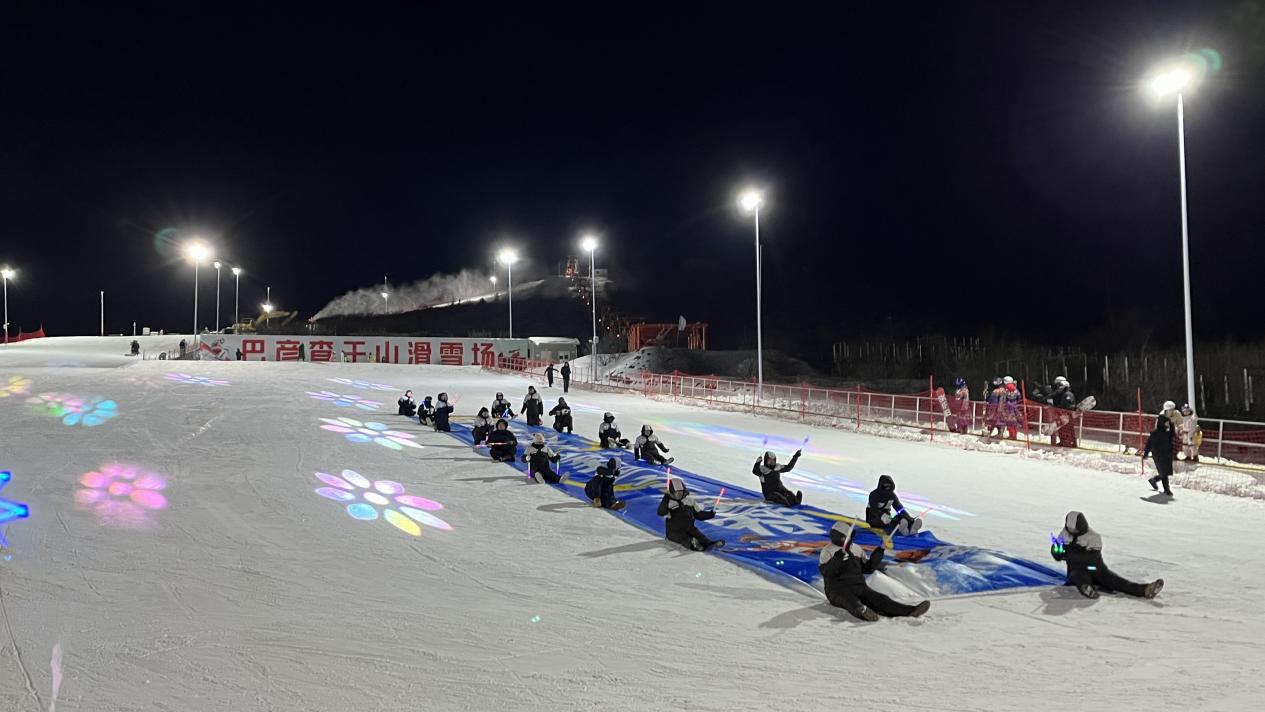 另一侧的初级雪道上,16名工作人员手持“来内蒙古做客先到乌兰浩特”的醒目条幅,在雪道上整齐排列,构成一道靓丽的宣传风景线。现场观众纷纷拿出手机记录这一精彩瞬间,欢呼声、喝彩声此起彼伏。“第一次在雪场看到这么有创意的表演,烟花配汉服简直太美了,这一趟真是没白来。”市民杨光的赞叹道出了不少现场观众的心声。